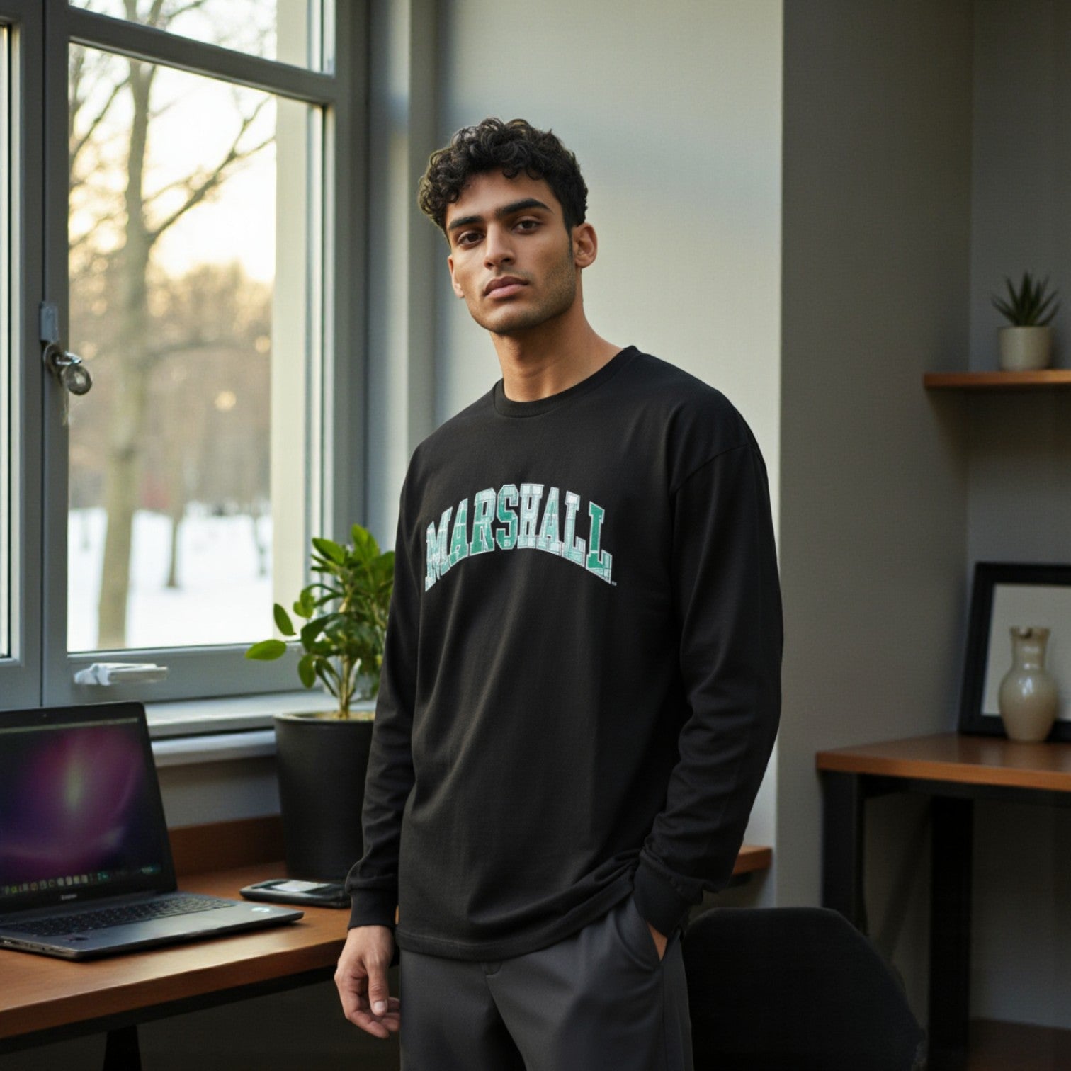 Check out this perfect blend of comfort and durability that is the Marshall Plaid Tee. Made from soft, breathable 100% cotton, it feels as good as it looks. The logo is printed with Velux, which is engineered to last—it won't peel, crack, or fade, no matter how often you wear it. Finished with quality knit cuffs and collar for a polished appearance, the relaxed unisex fit works for everyone. Invest in a tee that delivers exceptional value and stands up to real-world wear.