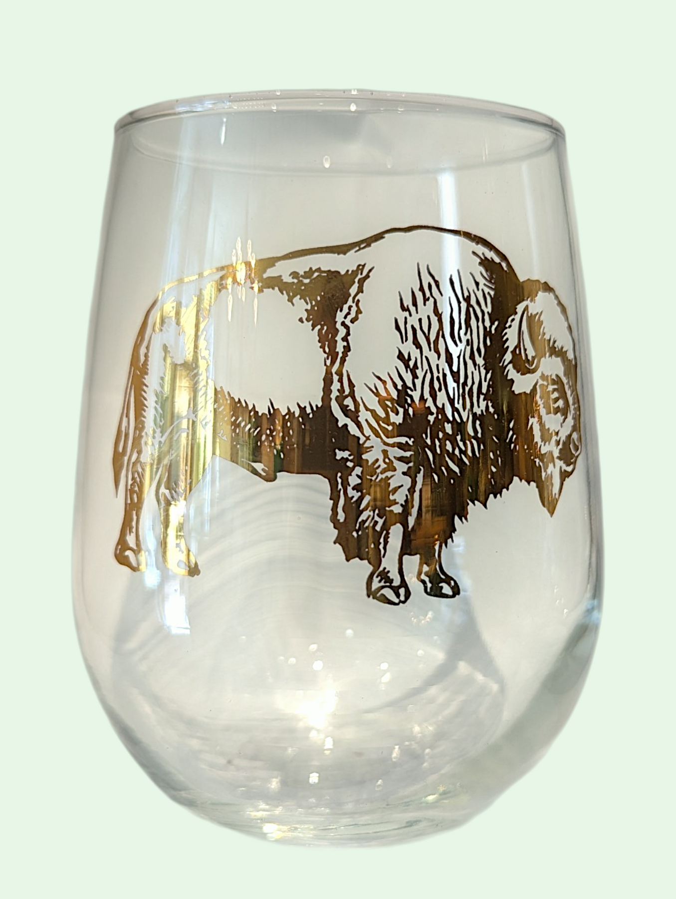 Enjoy your favorite beverage in this beautiful, generously sized 17 oz glass. We love the gold metallic print, hand screen-printed on a stemless wine glass, made in the USA.