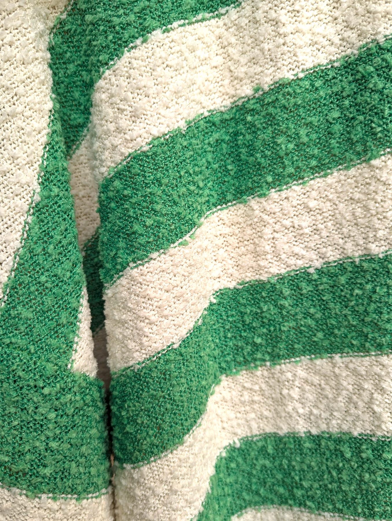 The Natalie Oversized Cardigan Sweater delivers easy layering with a relaxed silhouette and textured popcorn knit. V-neckline and button-down front offer easy styling versatility, while elbow-length sleeves and bold striping add visual interest. Perfect for layering over basics. this piece transitions seamlessly from casual weekends to office settings. The super-oversized fit ensures comfort.