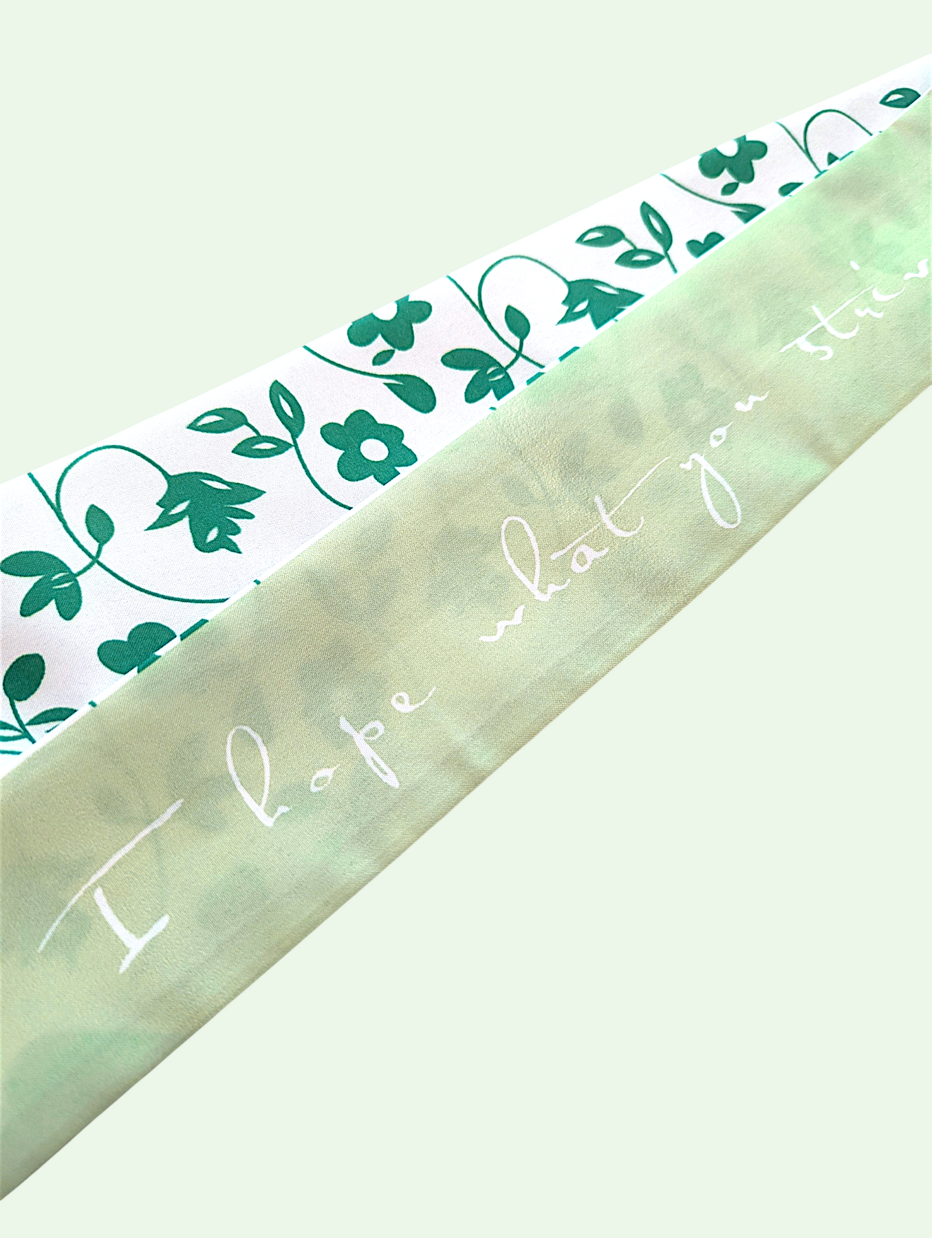 This adorable scarf features a pretty, kelly green floral print on one side and the phrase "I hope what you strive for will finally be as you wish" printed on the other. Style and a postive message? Yes, please!